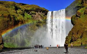 • 🌊 Skógafoss – massive and often rainbow-filled